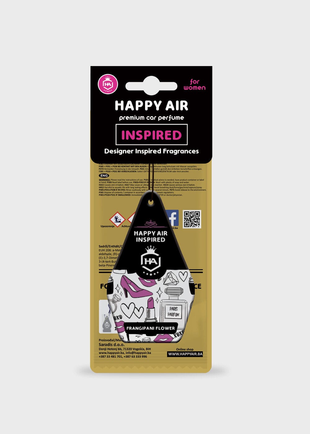 HAPPY AIR INSPIRED COLLECTION FRANGIPANI FLOWER for WOMAN. Горни мирисни ноти: лимун и соларни ноти; средни мирисни ноти: франгипани, јасмин и ylang-ylang; основни мирисни ноти: сандалово дрво и бензоин.
