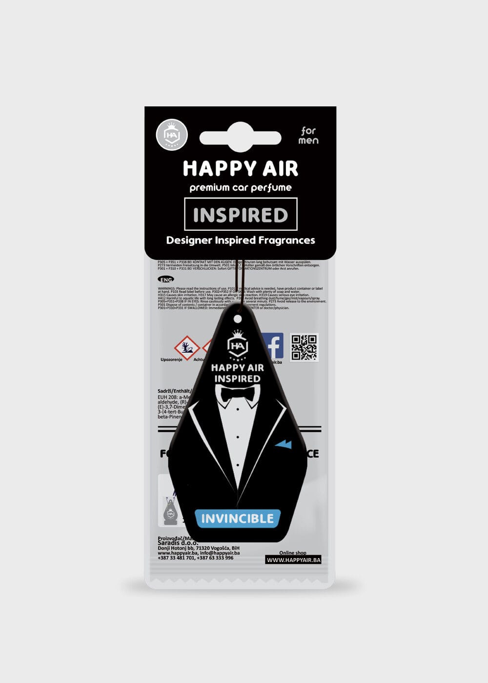 HAPPY AIR INSPIRED COLLECTION INVINCIBLE е дрвен мирис за мажи кој ја претставува свежа спортска креација. Основни ноти: амбергрис, дрво гуајак, храстова маховина и пачули.