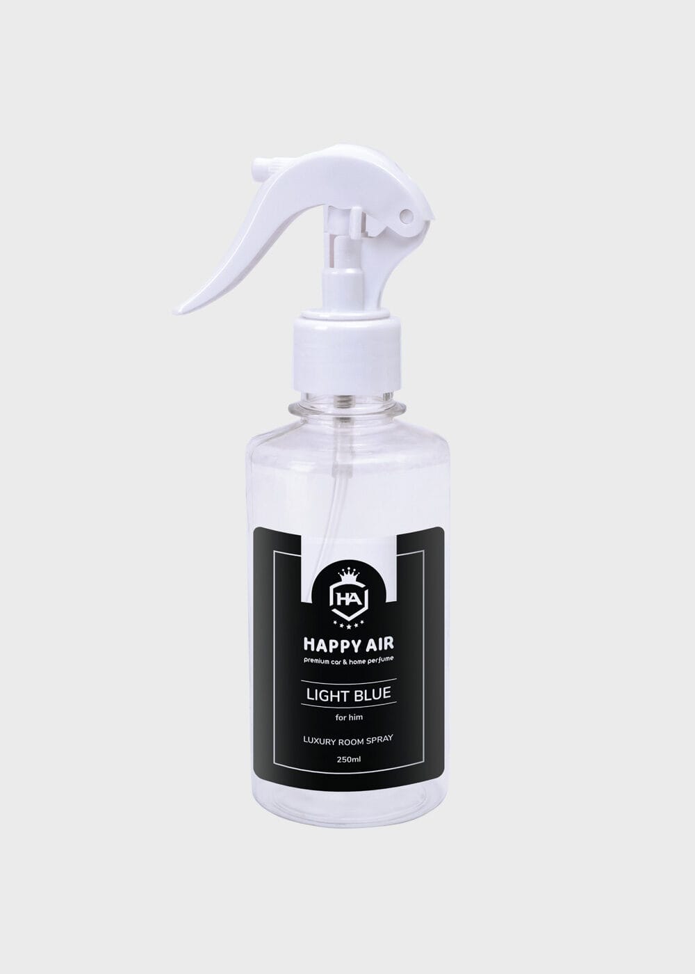 HAPPY AIR LUXURY ROOM SPRAY LIGHT BLUE е цитрусна ароматична арома за мажи. Мирис со многу цитруси во почетните ноти, ароматично срце од билки и благи зачини и сензуална подлога составена од мошус, темјан и храстова маховина.