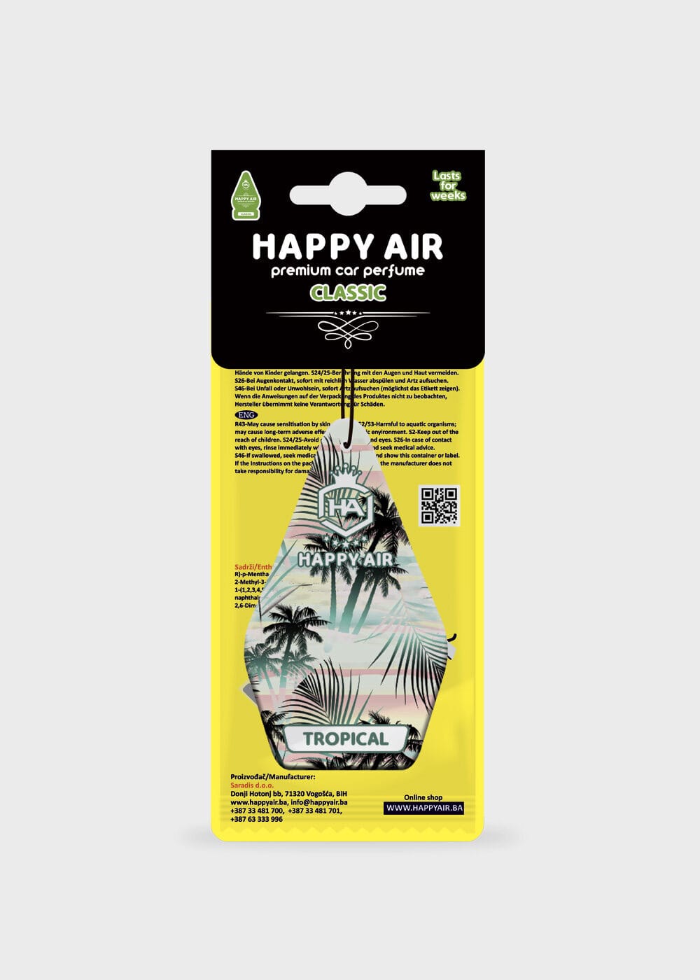 Нашиот модерен класик со неодолива арома TROPICAL. Папратно, зелено, ароматично. Висококвалитетните целулозни влакна совршено ги впиваат композициите на мирисот и овозможуваат долготрајно уживање во пријатната арома.